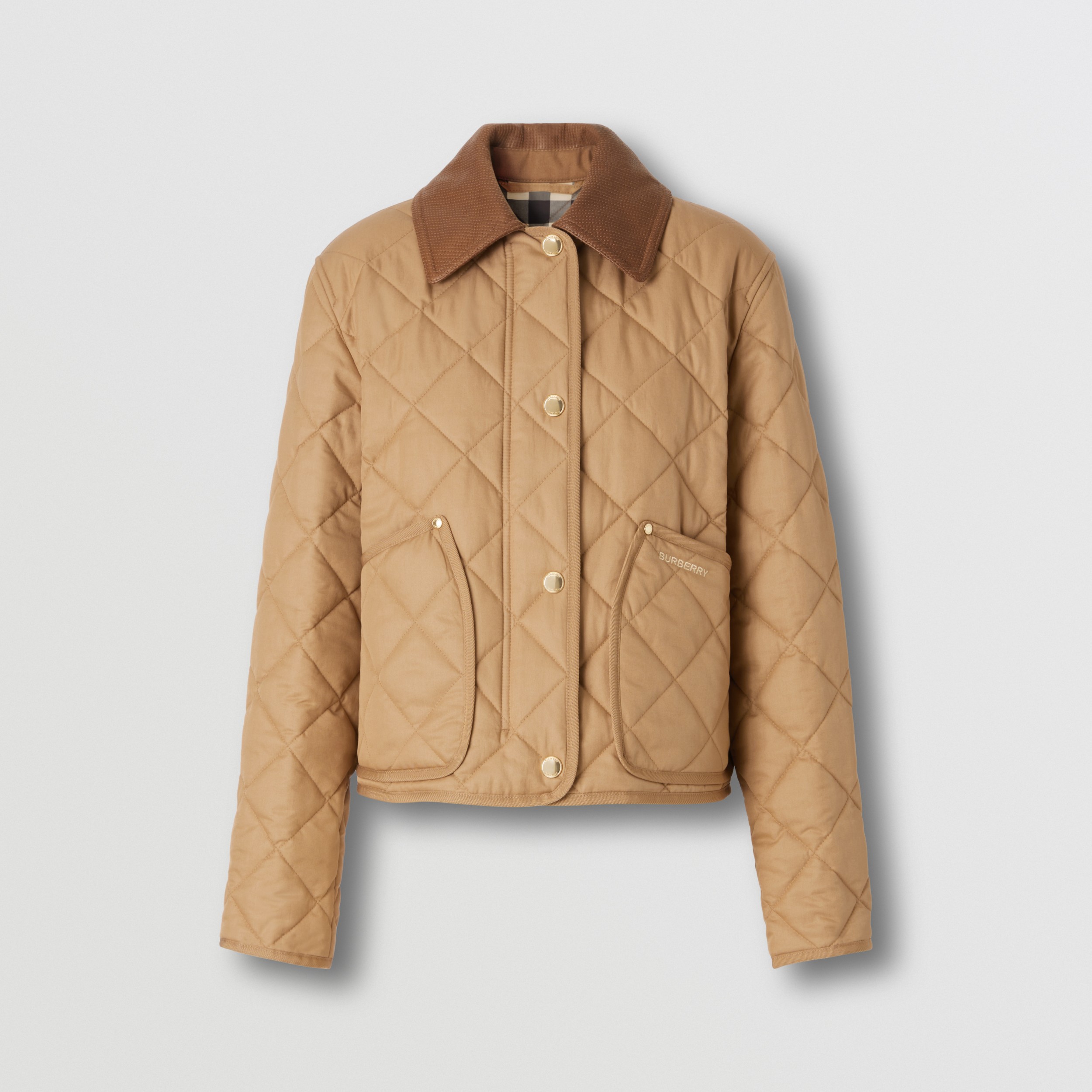Cotton Gabardine Diamond Quilted Jacket in Camel Women Burberry